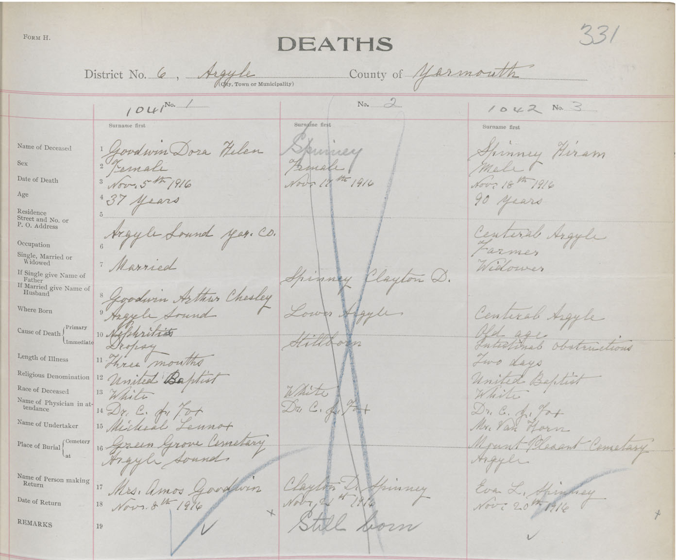 Death Registration: Year: 1916 book: 50 page: 331 number: 1041