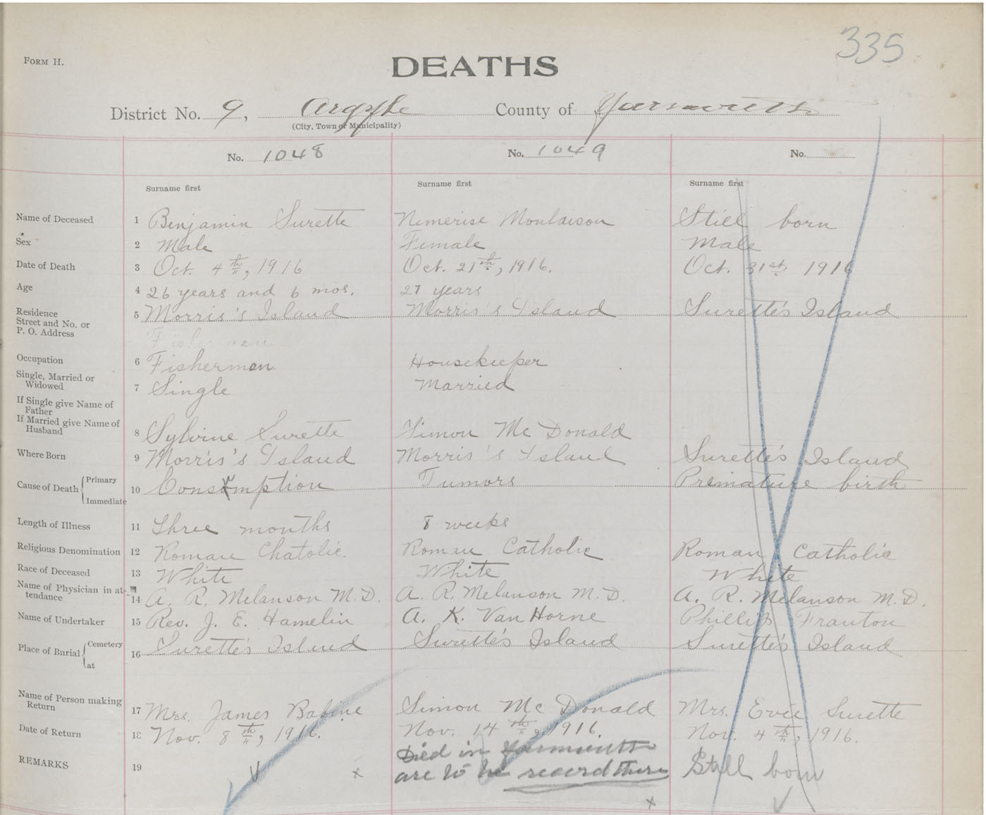 Death Registration: Year: 1916 book: 50 page: 335 number: 1048