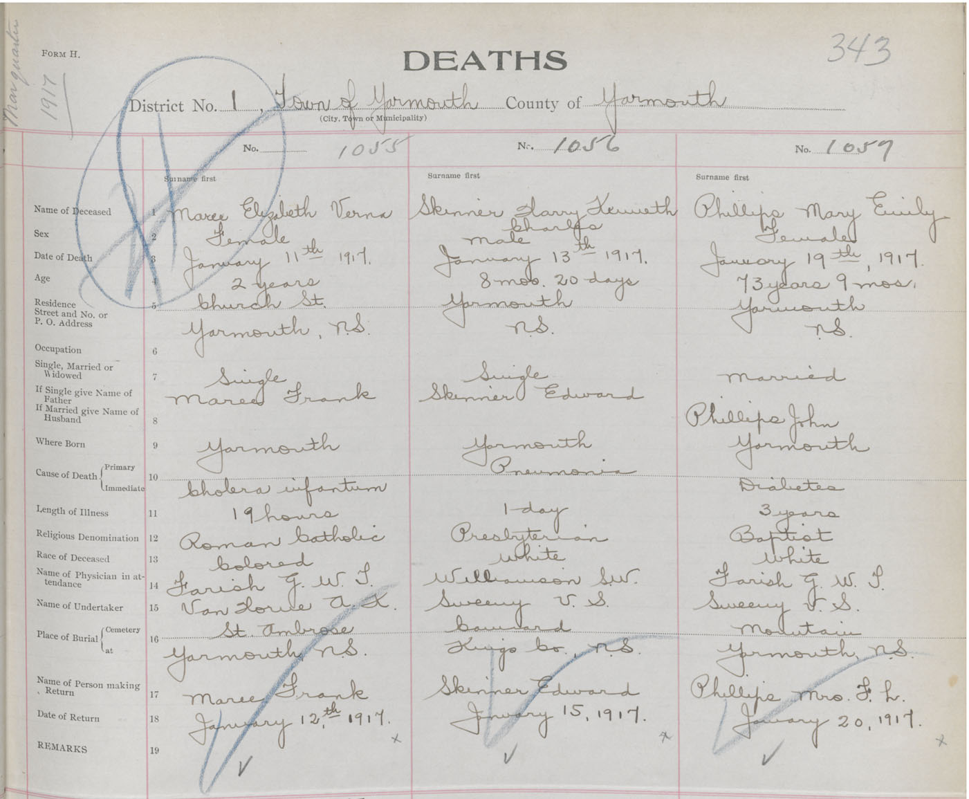 Death Registration: Year: 1917 book: 50 page: 343 number: 1055