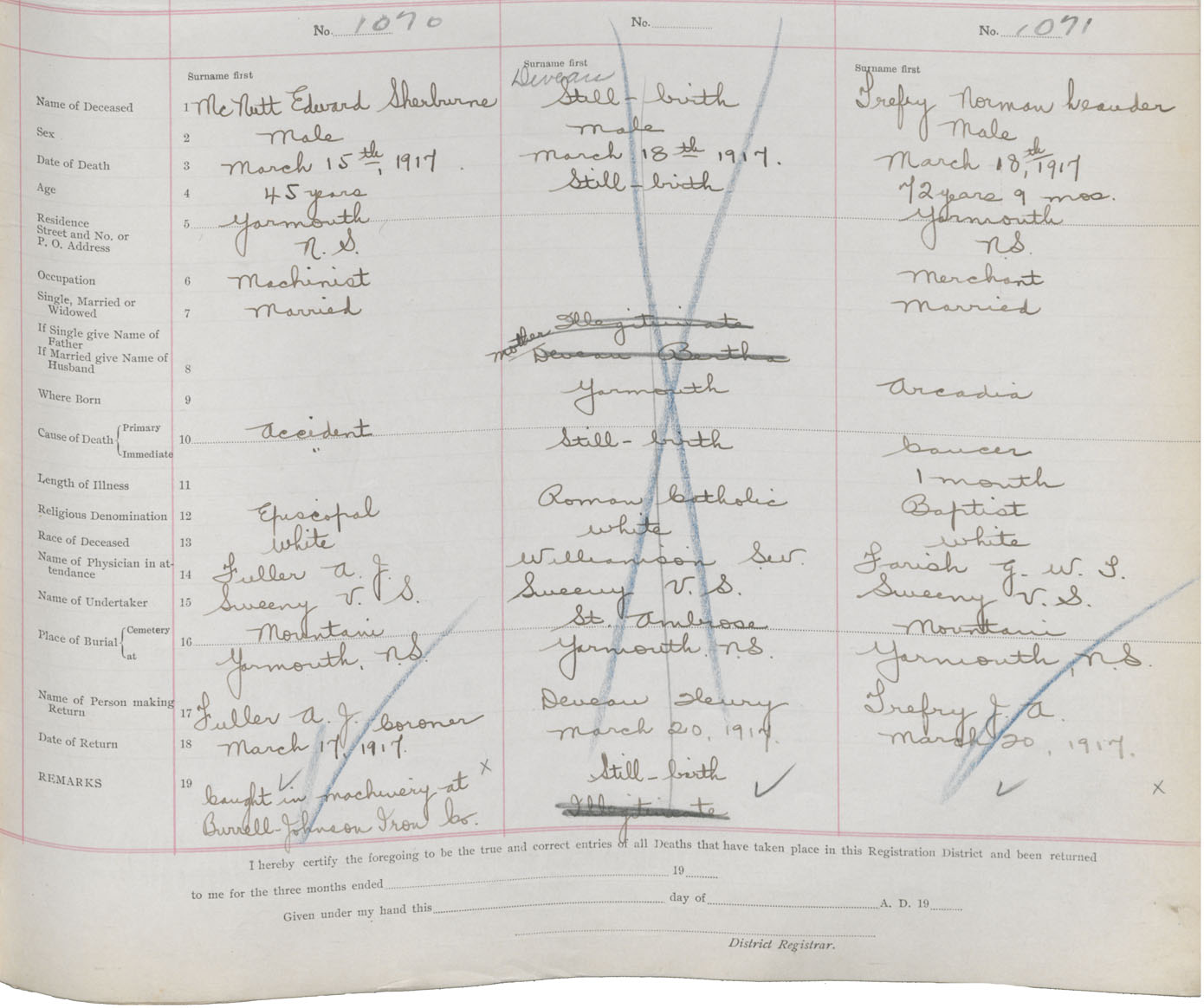 Death Registration: Year: 1917 book: 50 page: 345 number: 1070