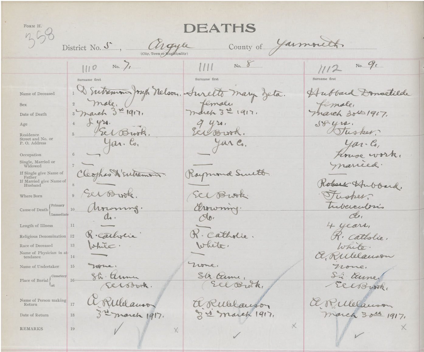 Death Registration: Year: 1917 book: 50 page: 358 number: 1110