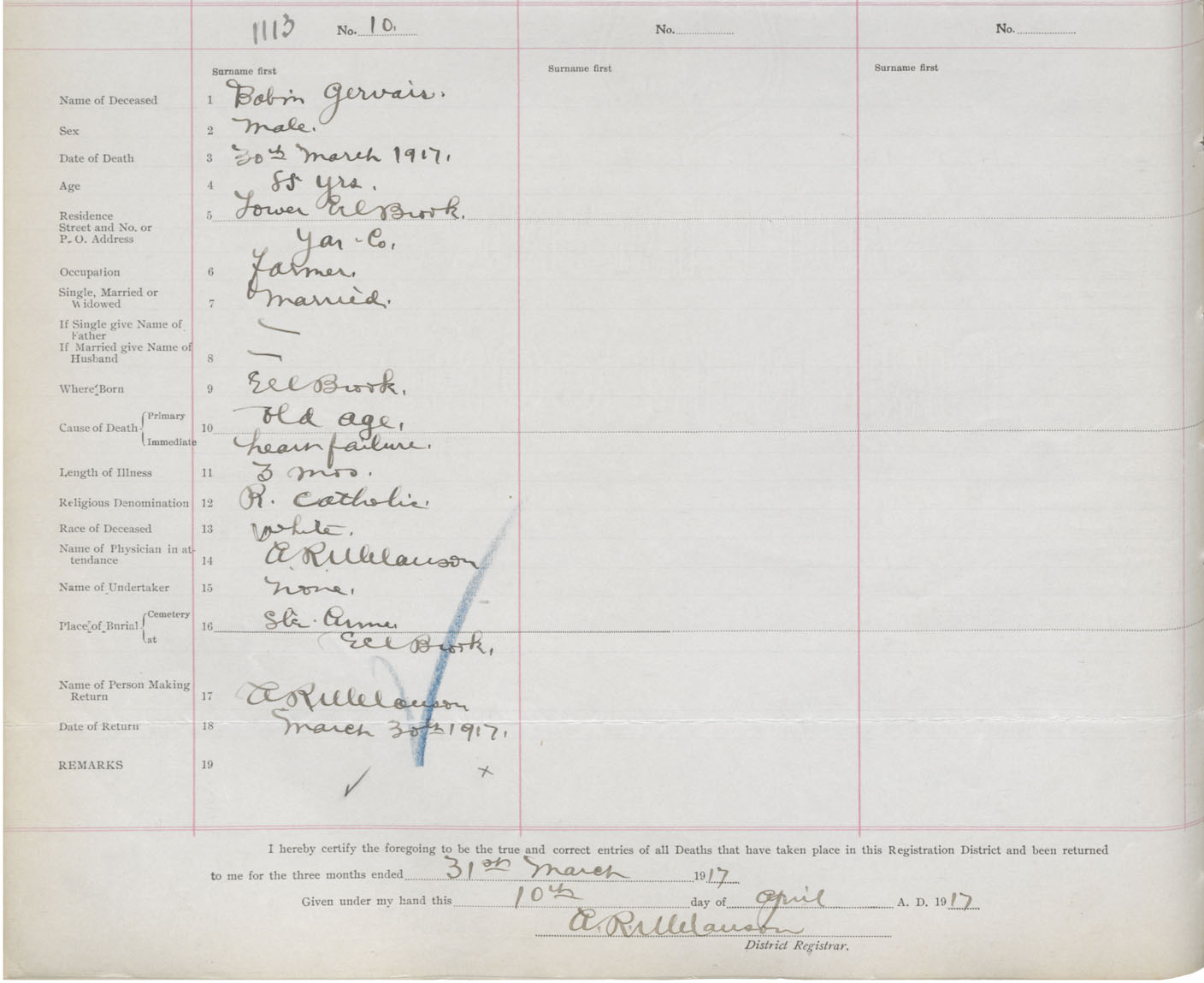 Death Registration: Year: 1917 book: 50 page: 358 number: 1113