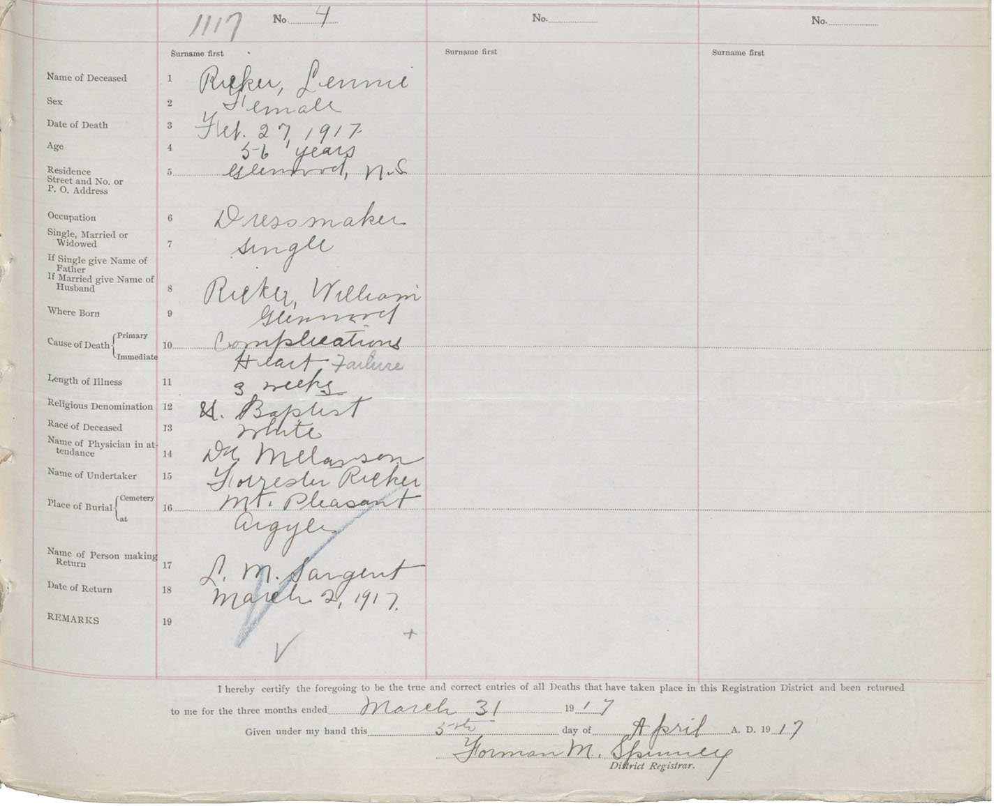 Death Registration: Year: 1917 book: 50 page: 359 number: 1117