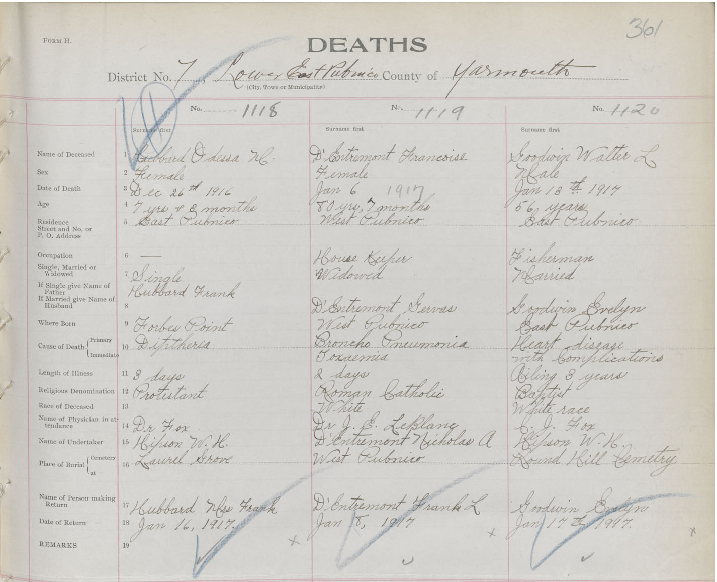 Death Registration: Year: 1916 book: 50 page: 361 number: 1118