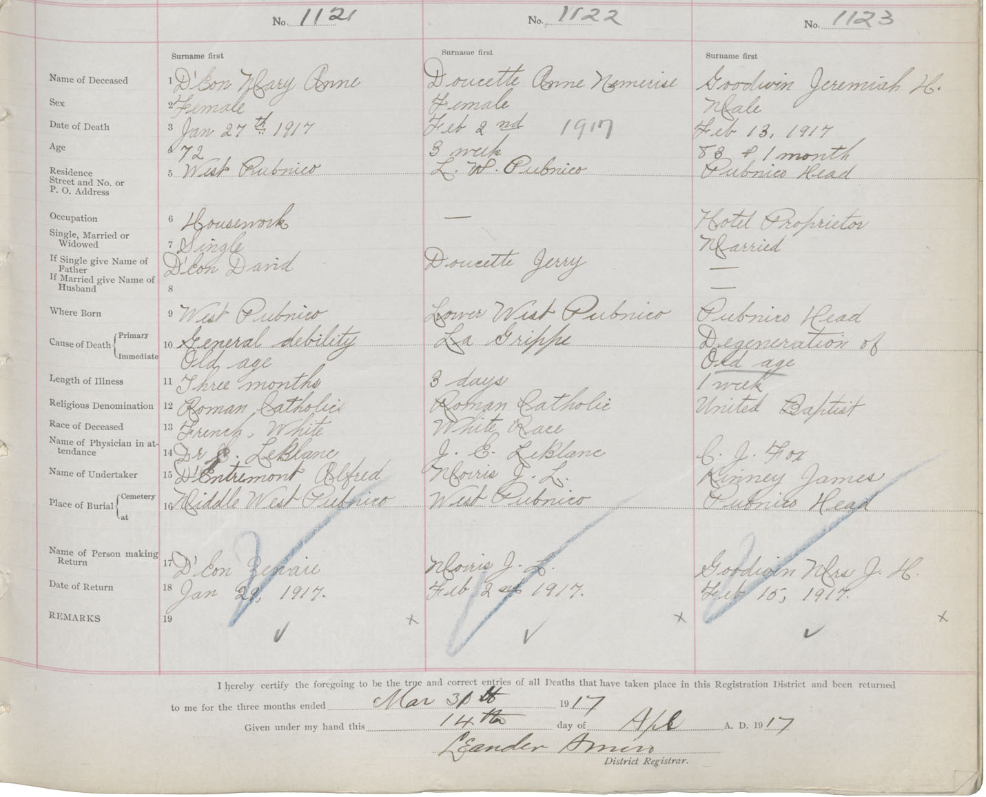 Death Registration: Year: 1917 book: 50 page: 361 number: 1121