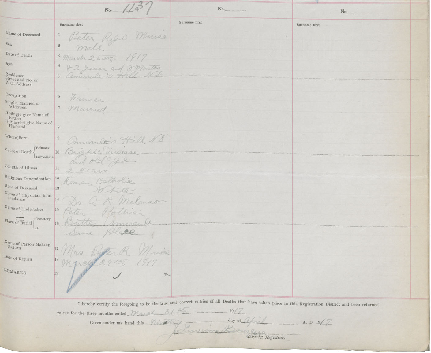 Death Registration: Year: 1917 book: 50 page: 367 number: 1137