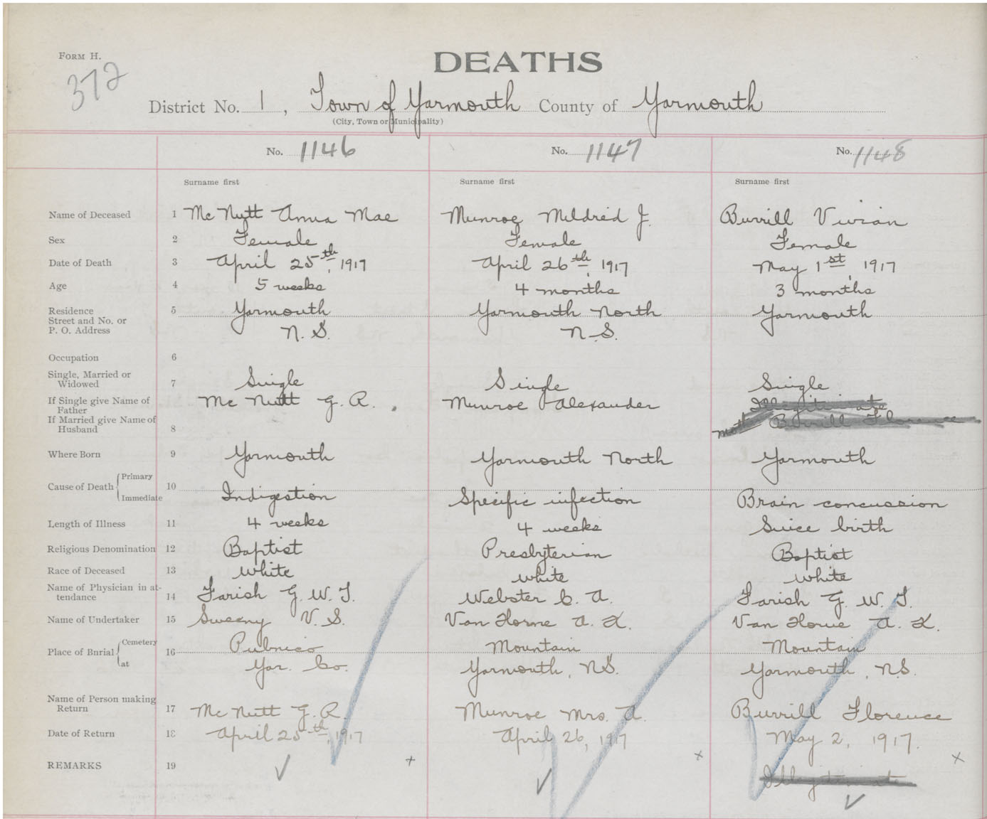 Death Registration: Year: 1917 book: 50 page: 372 number: 1146