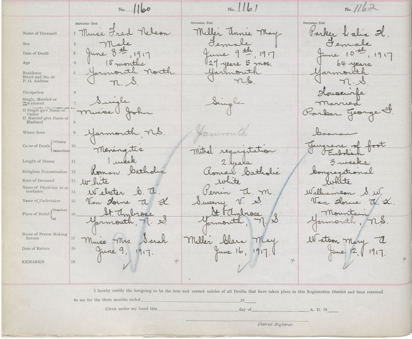 Death Registration: Year: 1917 book: 50 page: 374 number: 1160