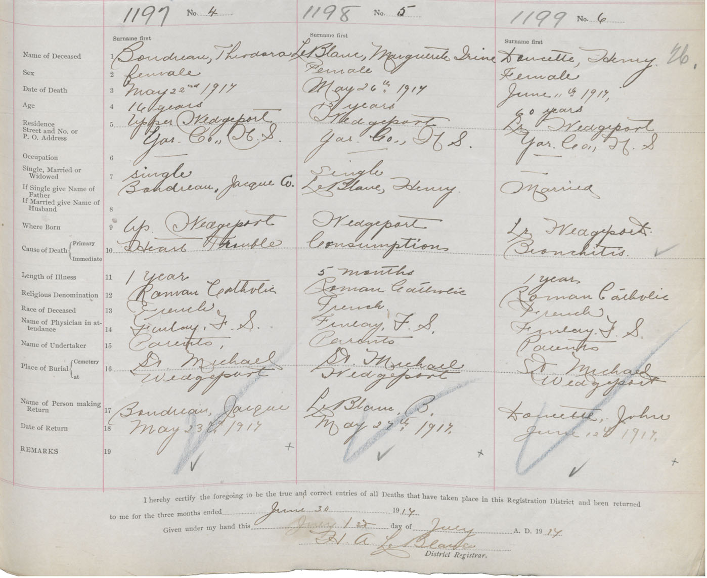 Death Registration: Year: 1917 book: 50 page: 385 number: 1199