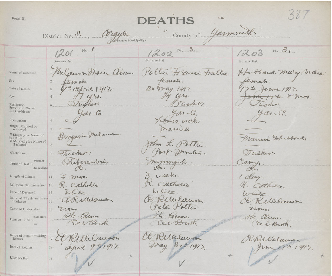 Death Registration: Year: 1917 book: 50 page: 387 number: 1203