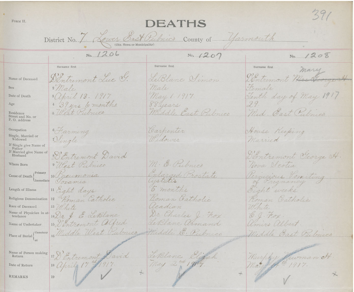 Death Registration: Year: 1917 book: 50 page: 391 number: 1208