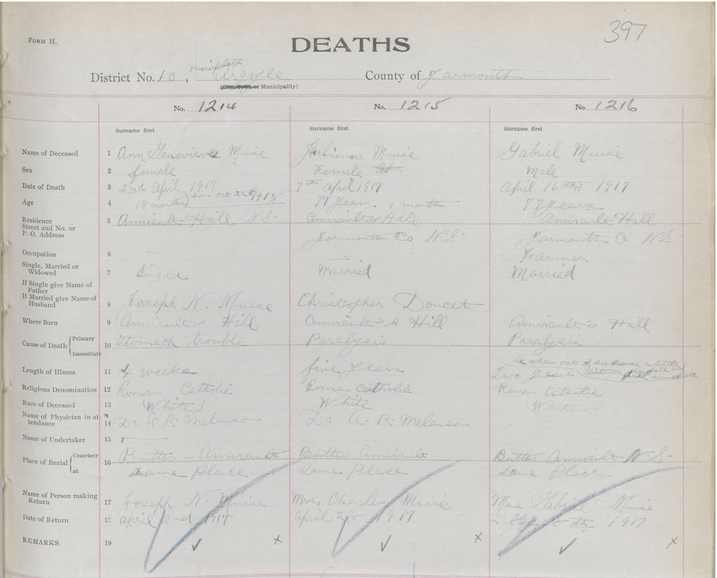 Death Registration: Year: 1917 book: 50 page: 397 number: 1216