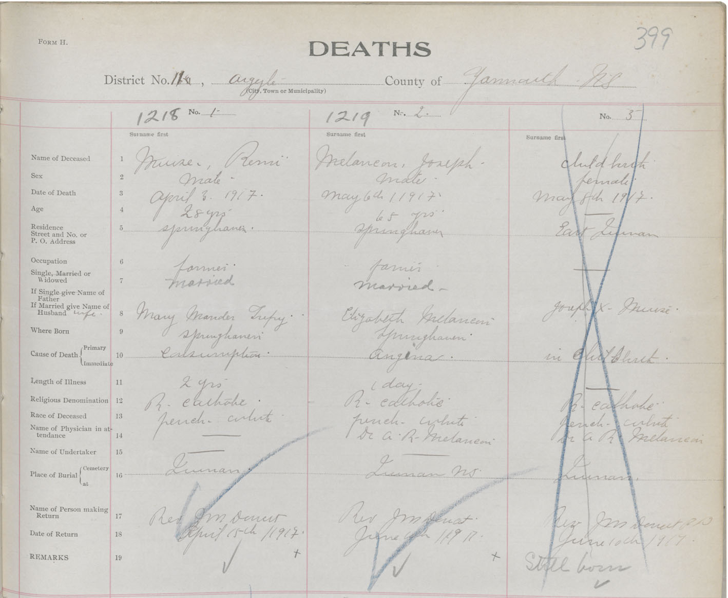 Death Registration: Year: 1917 book: 50 page: 399 number: 1219