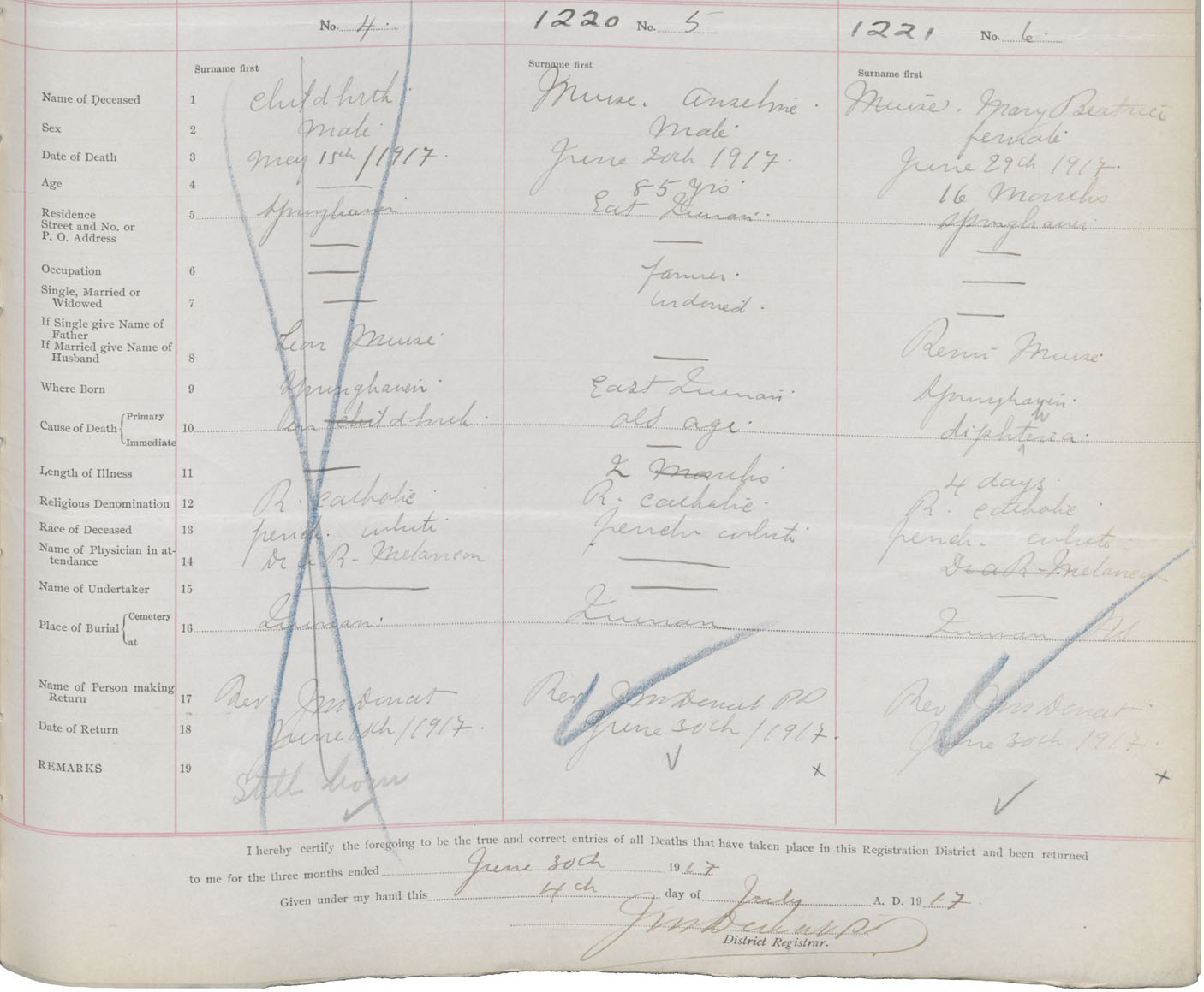 Death Registration: Year: 1917 book: 50 page: 399 number: 1221