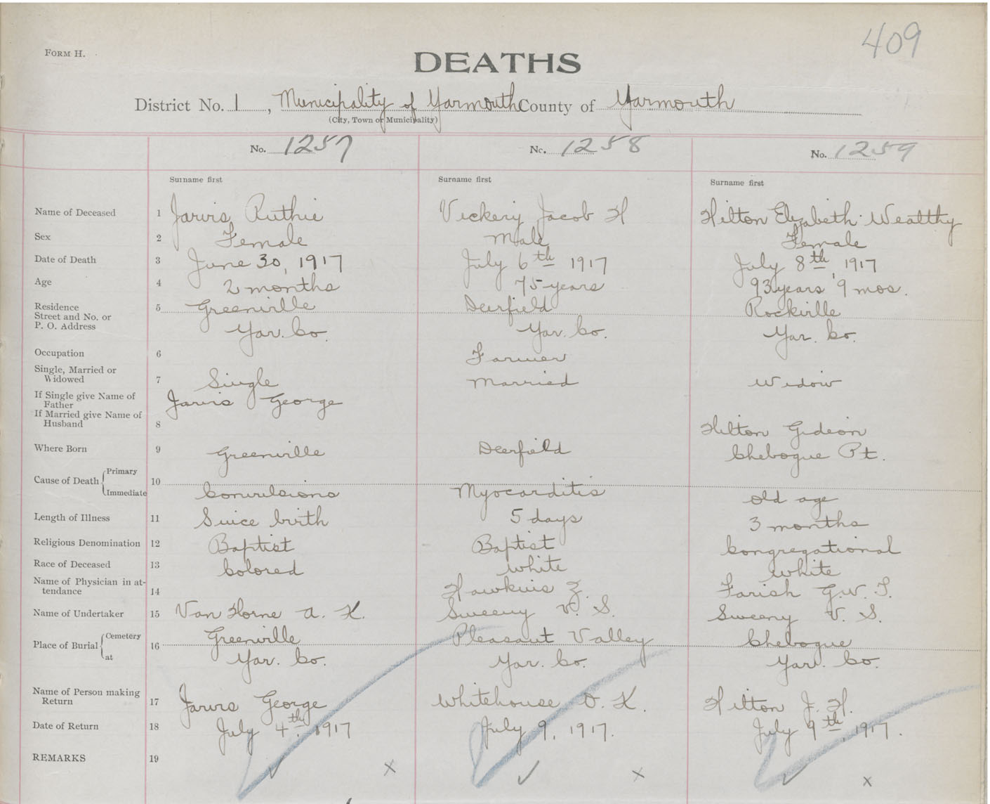 Death Registration: Year: 1917 book: 50 page: 409 number: 1259