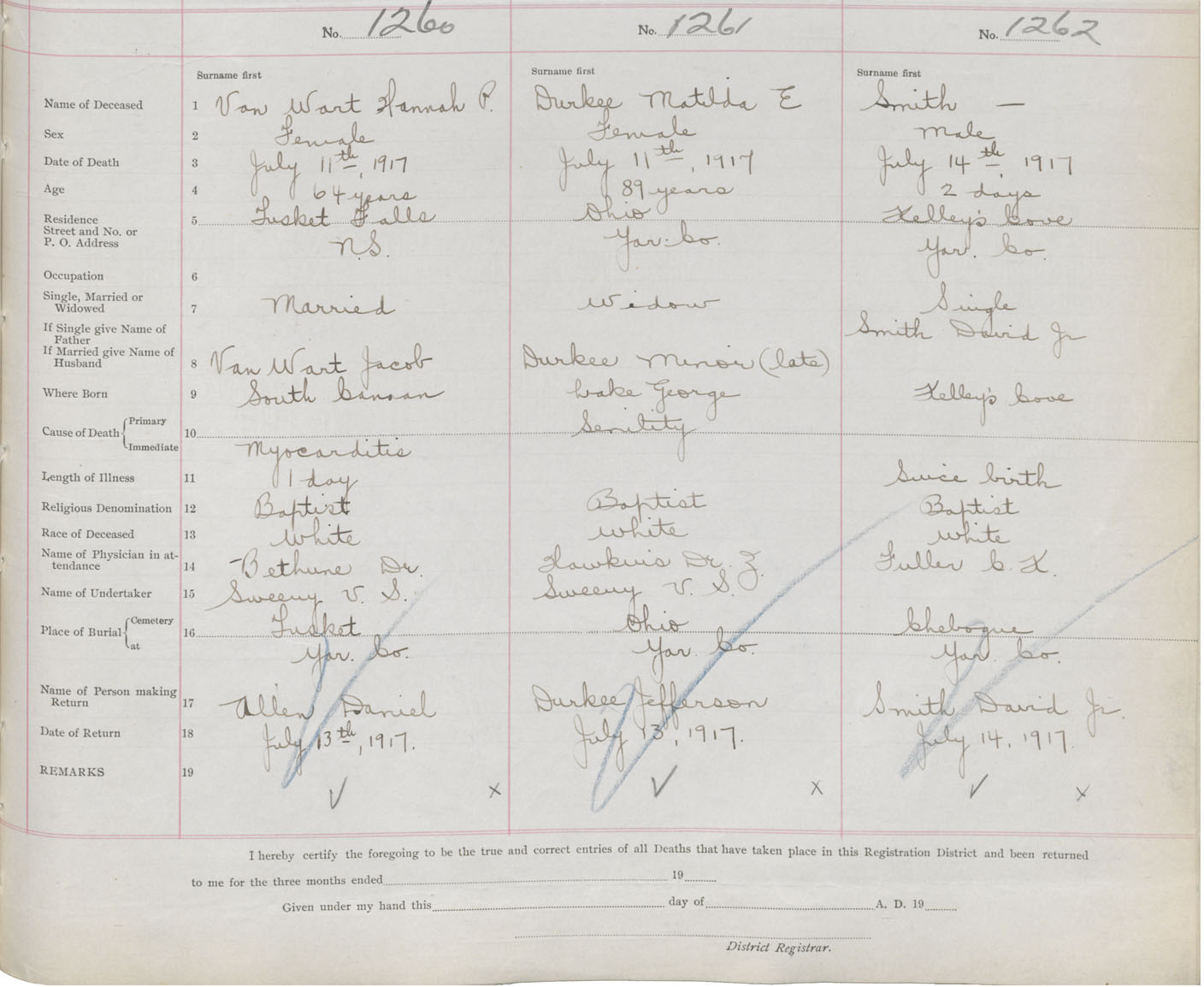 Death Registration: Year: 1917 book: 50 page: 409 number: 1262