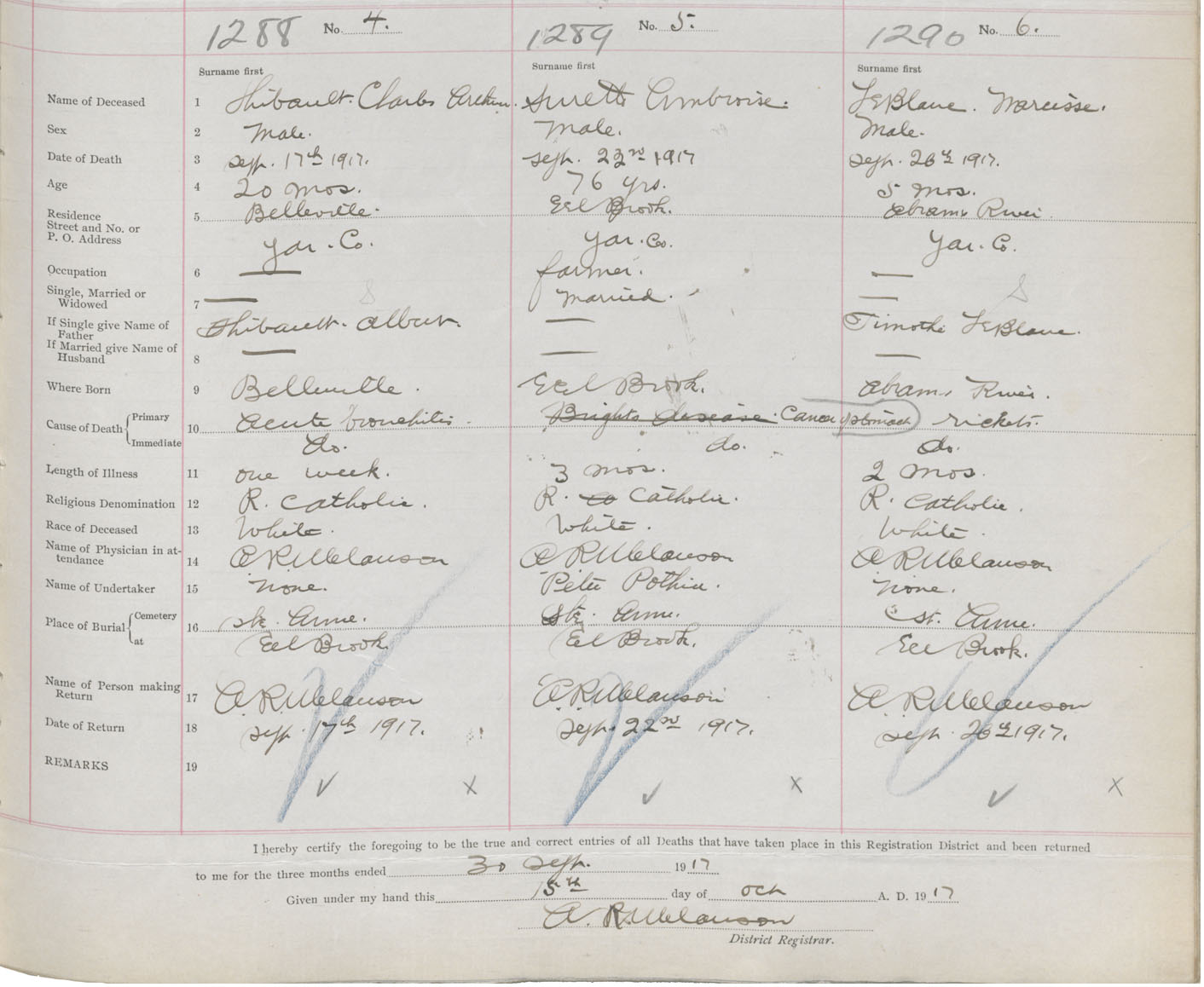 Death Registration: Year: 1917 book: 50 page: 419 number: 1290