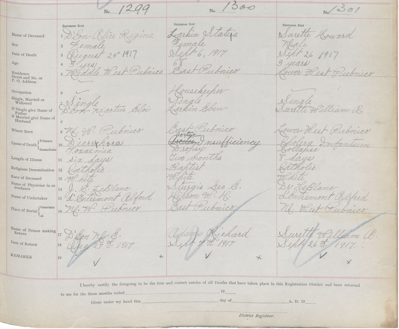 Death Registration: Year: 1917 book: 50 page: 423 number: 1301