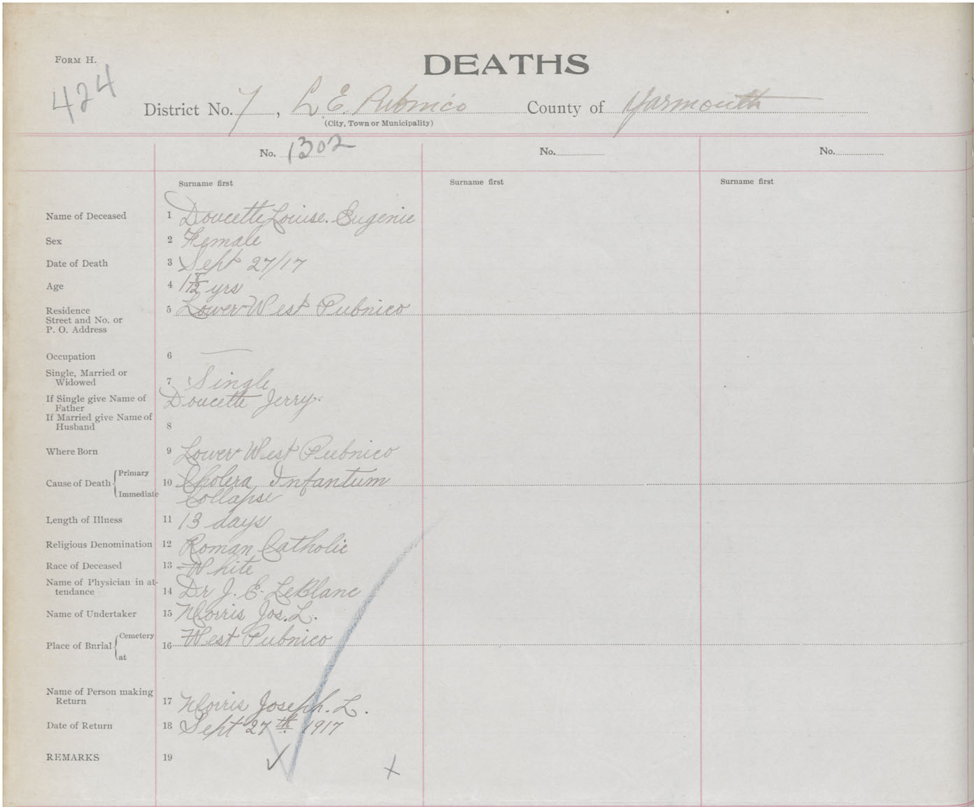 Death Registration: Year: 1917 book: 50 page: 424 number: 1302