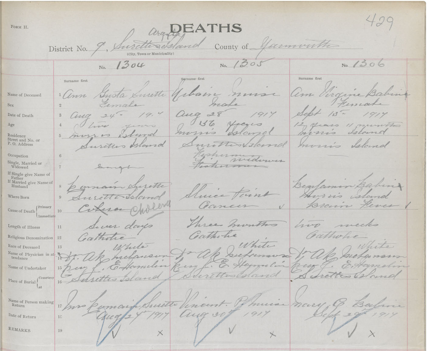 Death Registration: Year: 1917 book: 50 page: 429 number: 1306