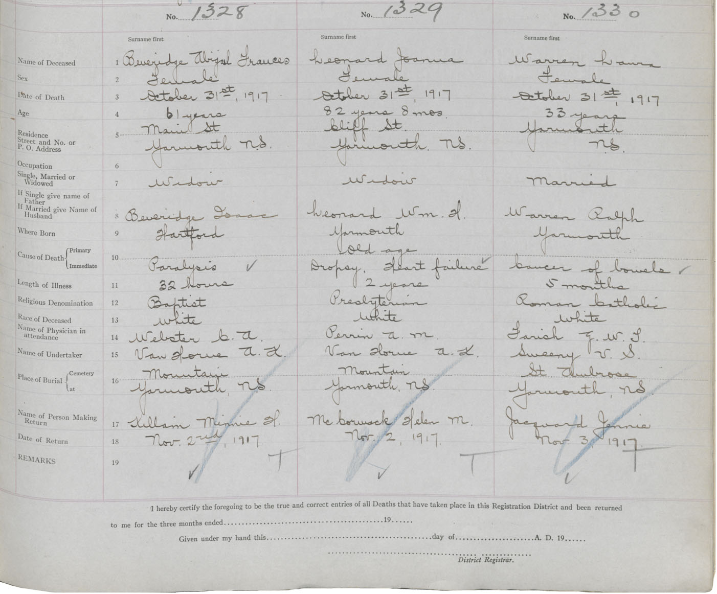 Death Registration: Year: 1917 book: 50 page: 439 number: 1330