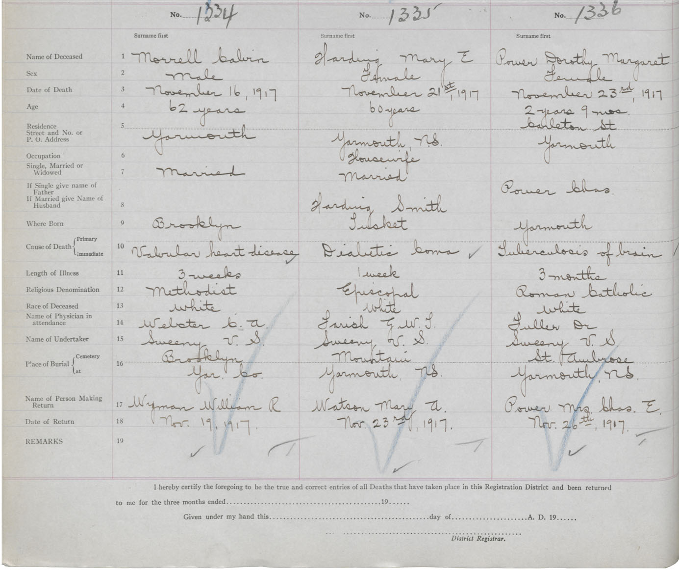 Death Registration: Year: 1917 book: 50 page: 440 number: 1336
