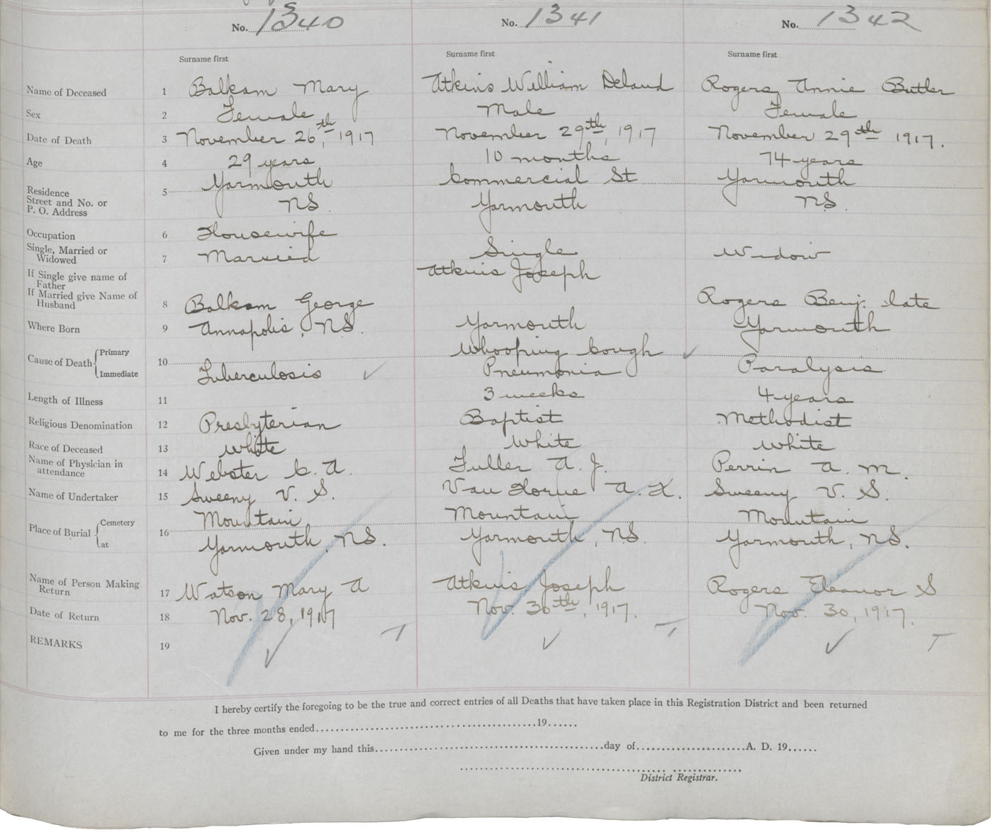 Death Registration: Year: 1917 book: 50 page: 441 number: 1342
