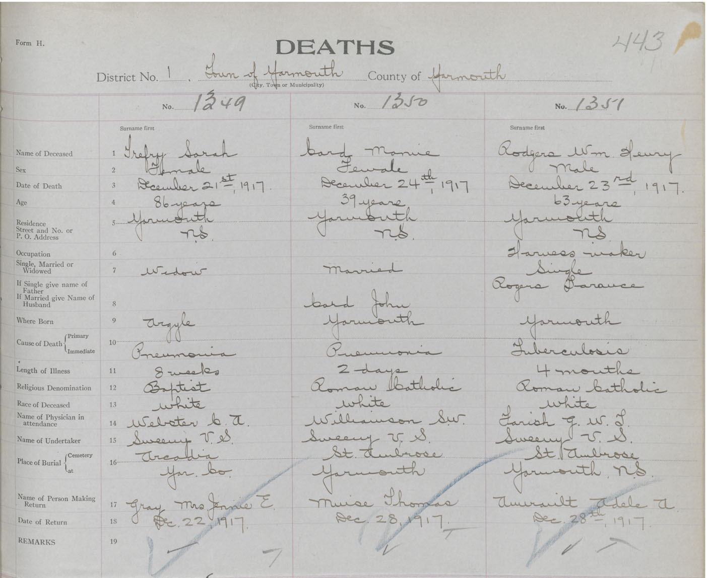 Death Registration: Year: 1917 book: 50 page: 443 number: 1351