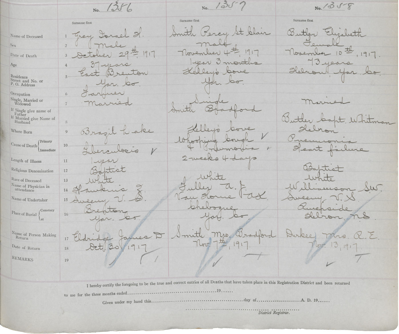 Death Registration: Year: 1917 book: 50 page: 445 number: 1358