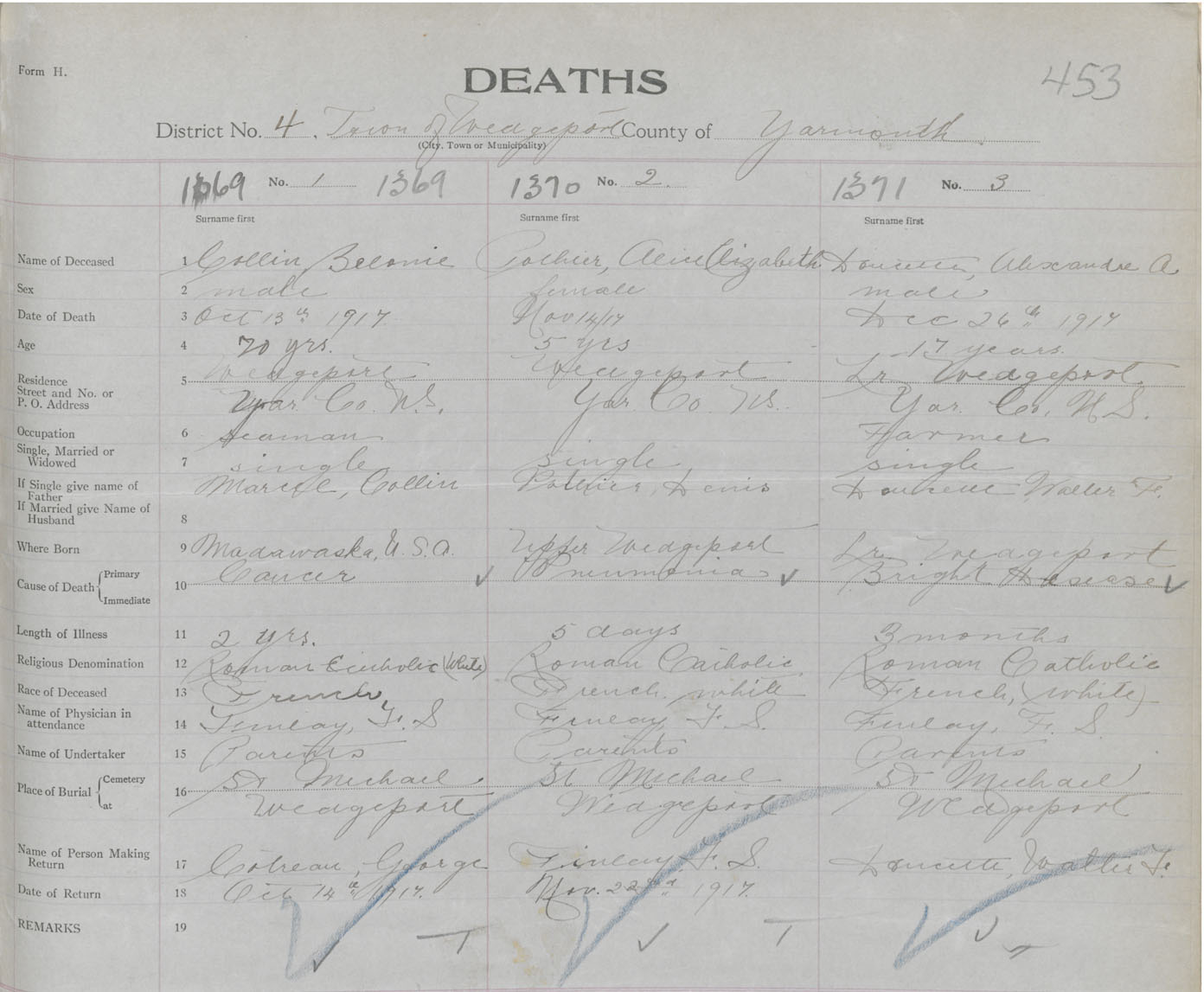 Death Registration: Year: 1917 book: 50 page: 453 number: 1371