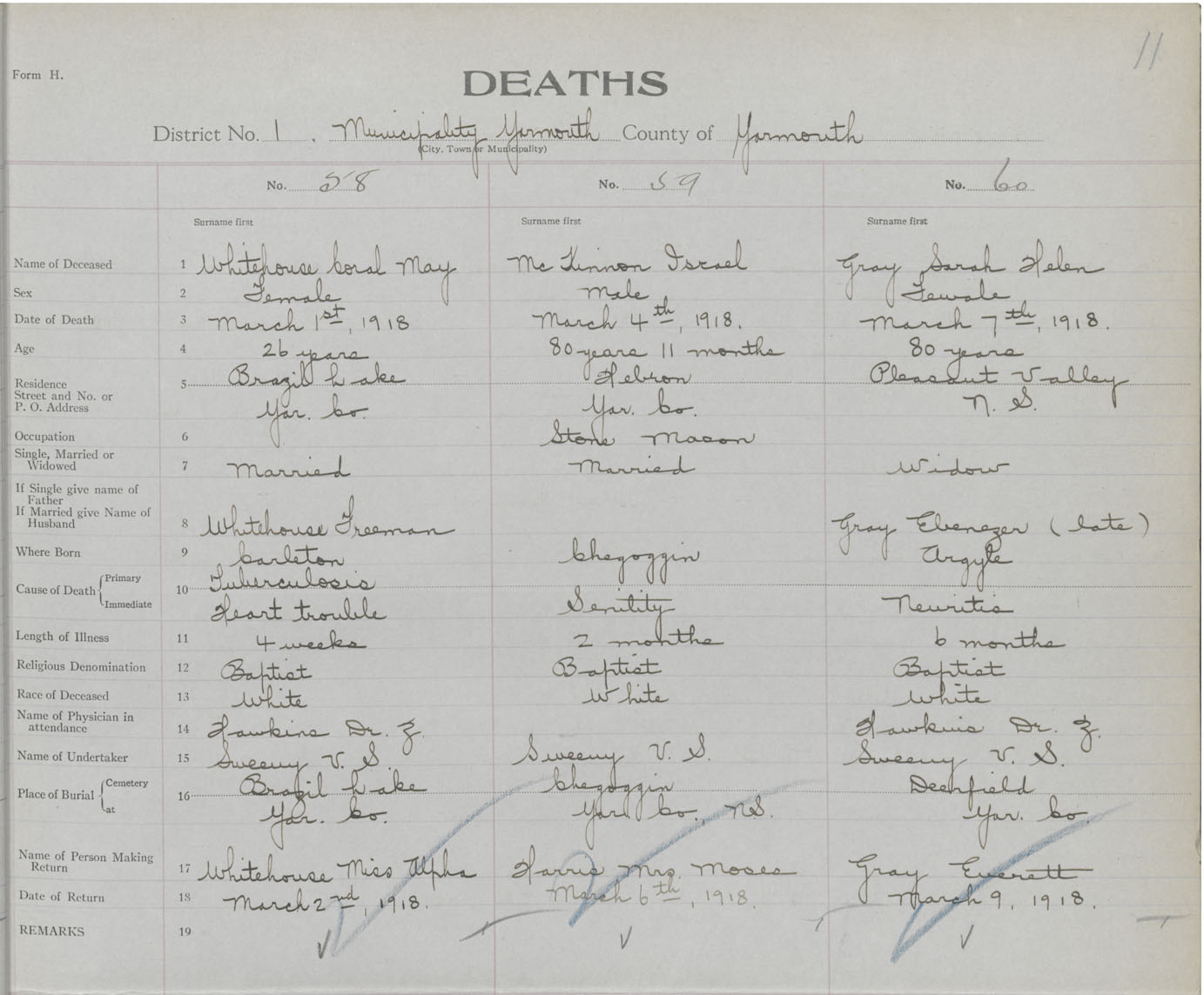 Death Registration: Year: 1918 book: 51 page: 11 number: 60