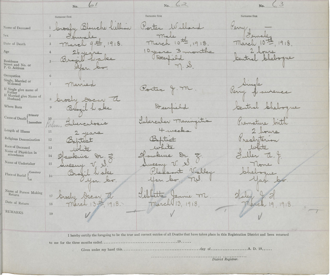 Death Registration: Year: 1918 book: 51 page: 11 number: 63