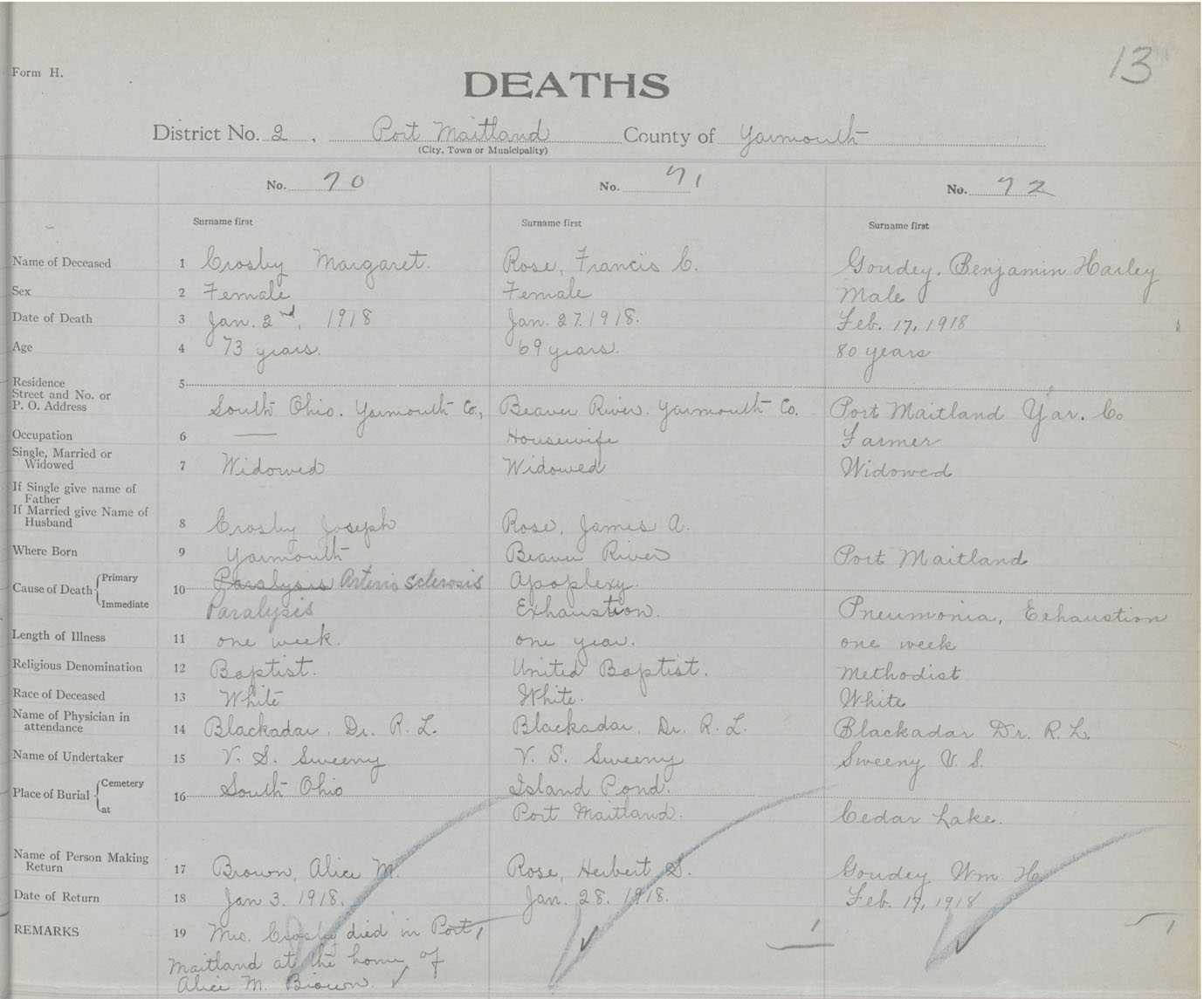Death Registration: Year: 1918 book: 51 page: 13 number: 70