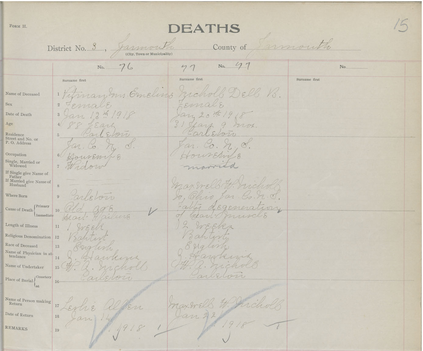 Death Registration: Year: 1918 book: 51 page: 15 number: 76
