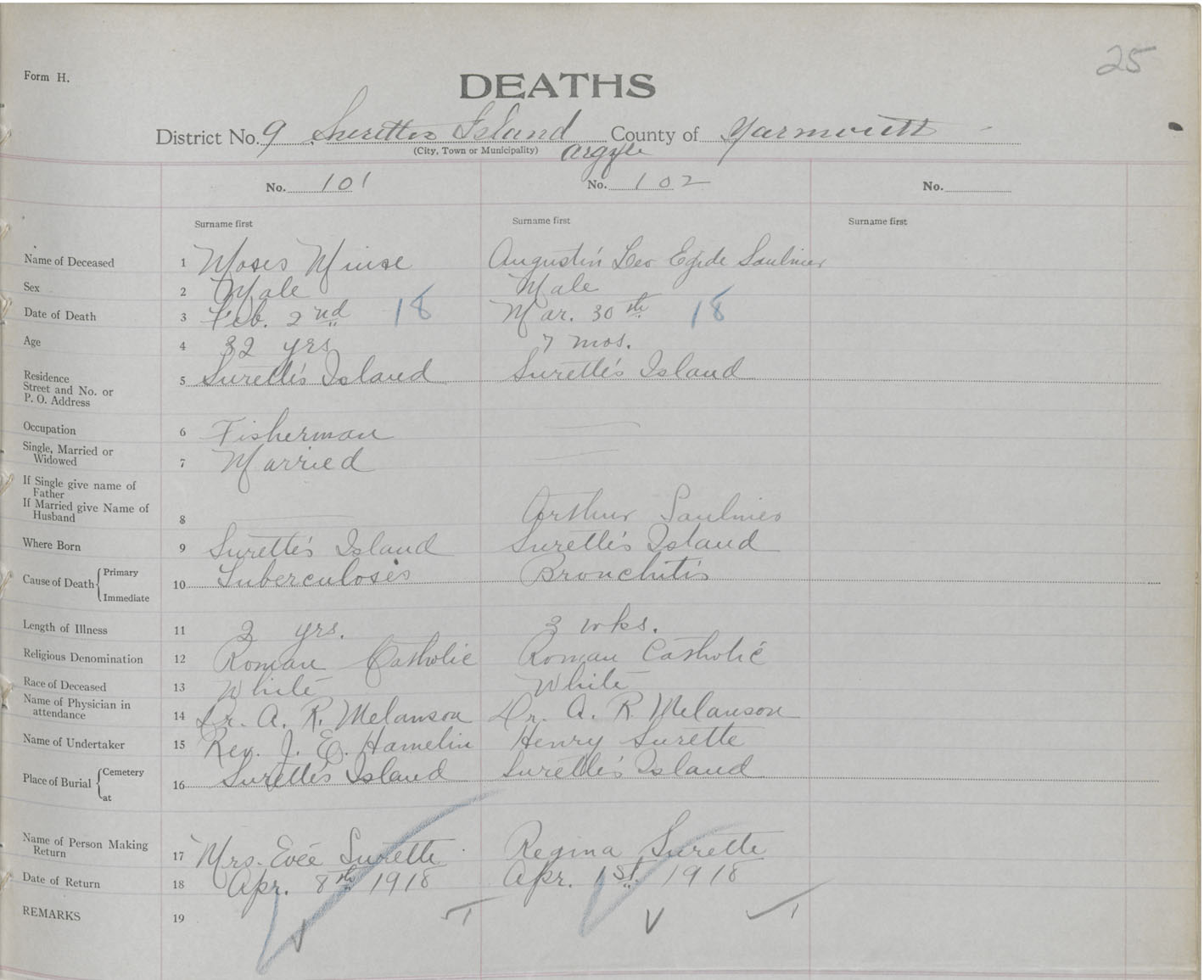 Death Registration: Year: 1918 book: 51 page: 25 number: 101