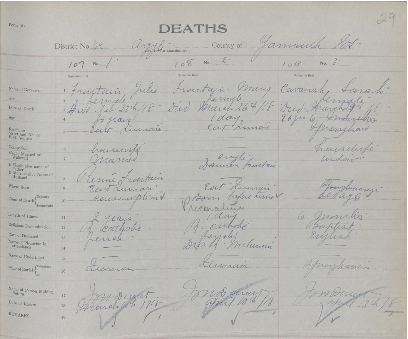 Death Registration: Year: 1918 book: 51 page: 29 number: 107
