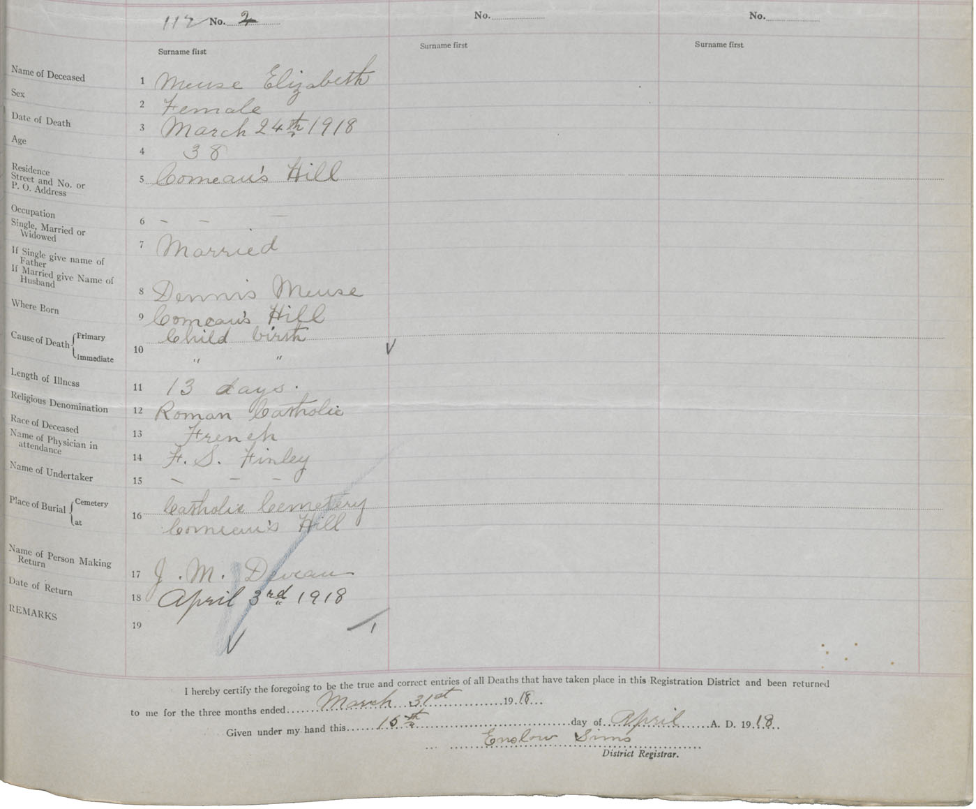 Death Registration: Year: 1918 book: 51 page: 31 number: 112