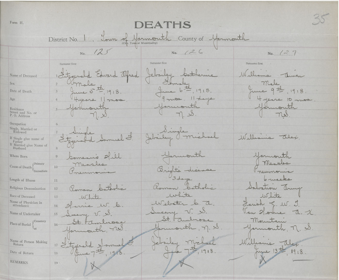 Death Registration: Year: 1918 book: 51 page: 35 number: 125