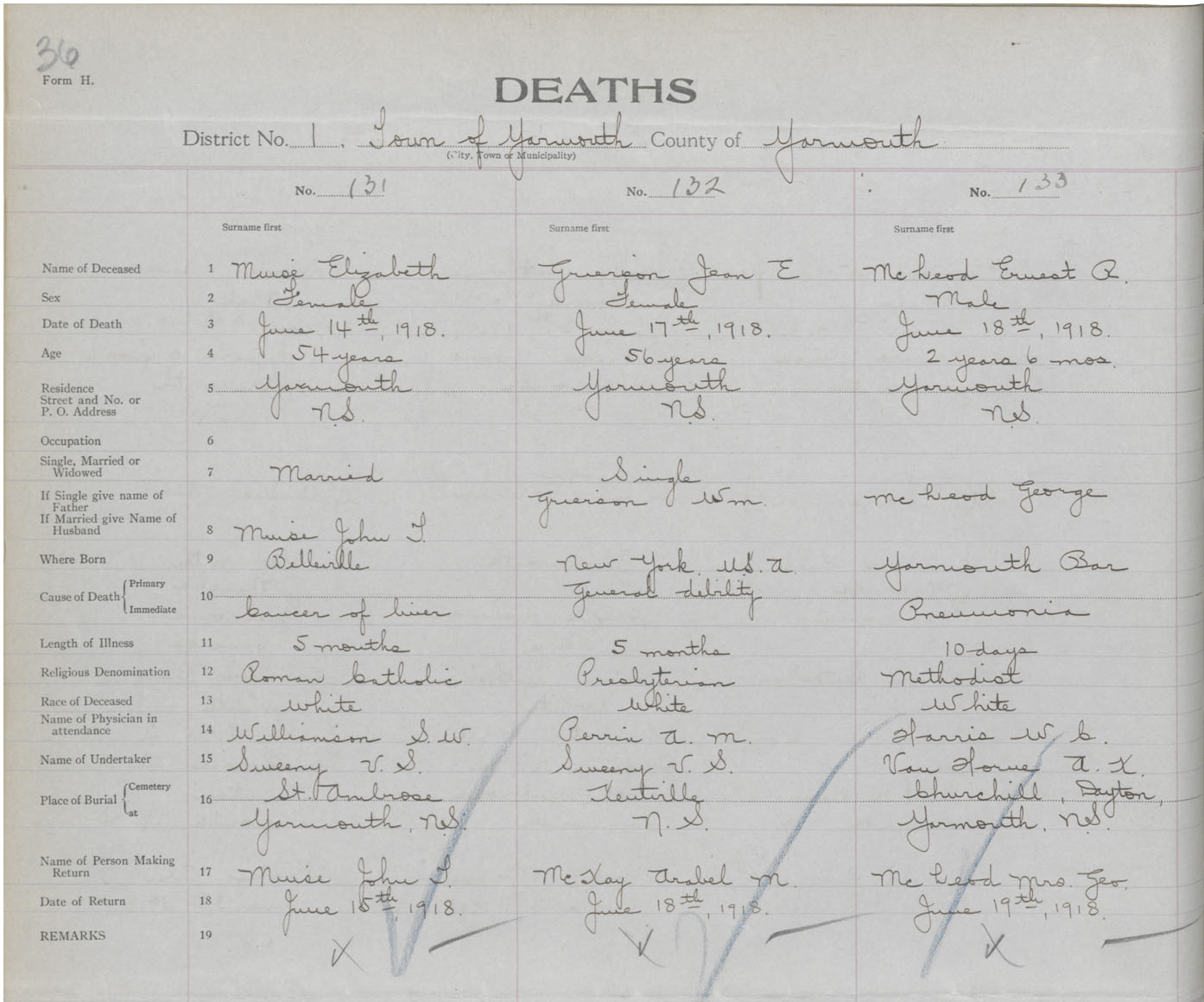 Death Registration: Year: 1918 book: 51 page: 36 number: 131