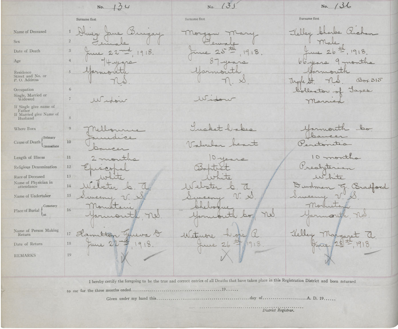 Death Registration: Year: 1918 book: 51 page: 36 number: 134