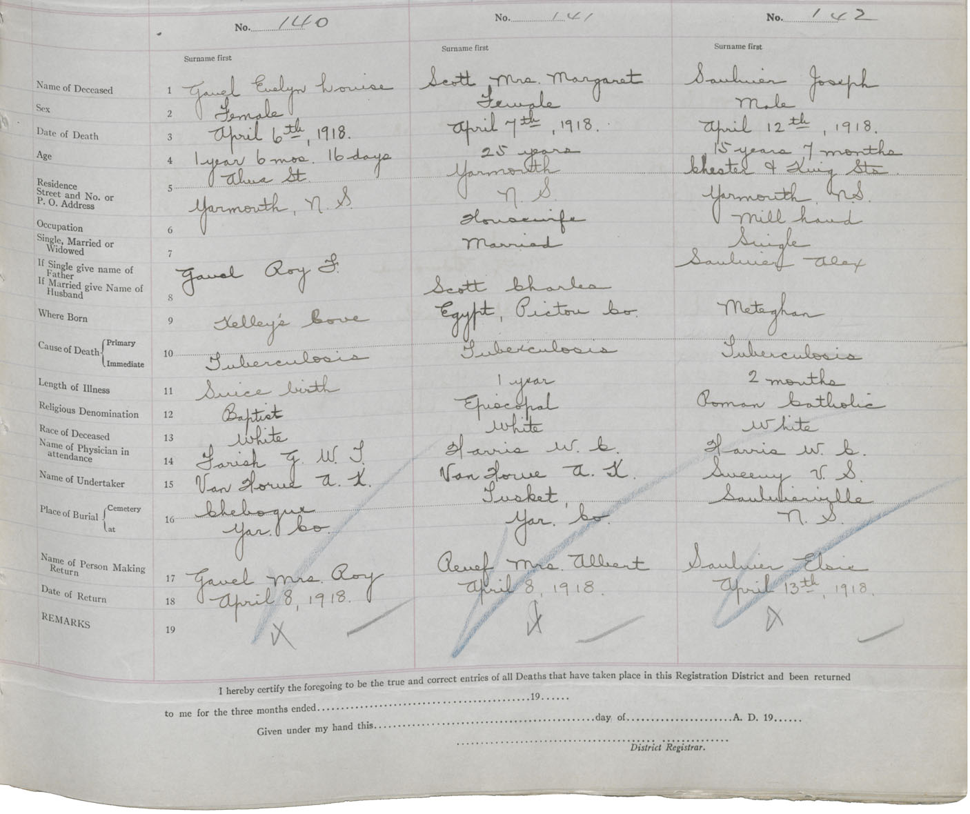Death Registration: Year: 1918 book: 51 page: 37 number: 140