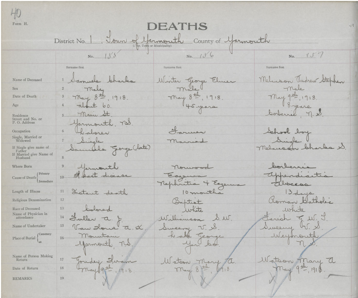 Death Registration: Year: 1918 book: 51 page: 40 number: 155