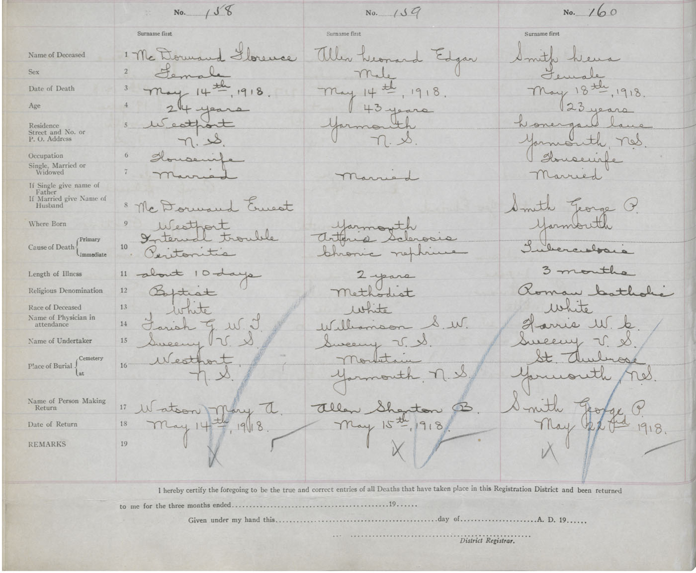 Death Registration: Year: 1918 book: 51 page: 40 number: 158