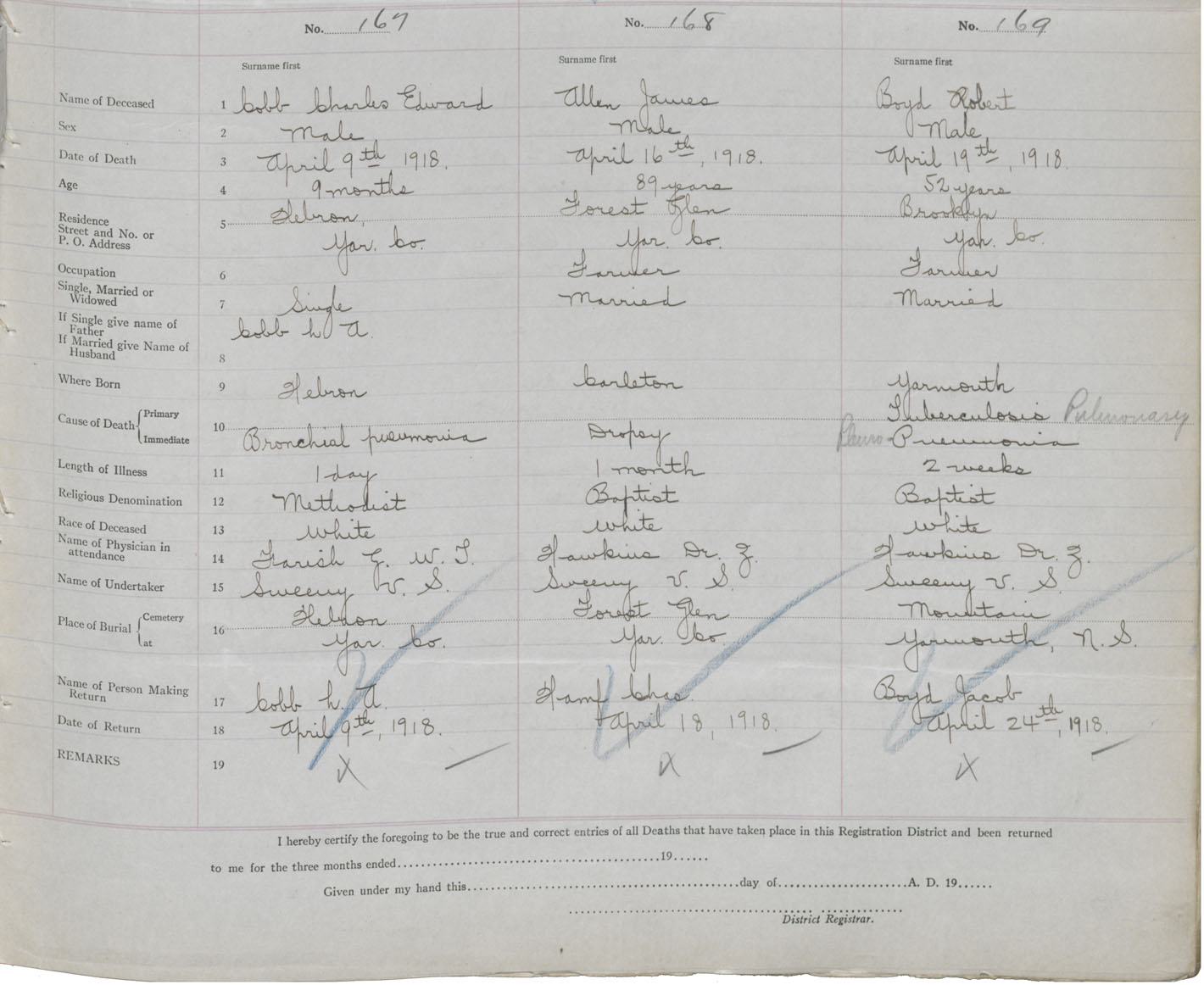 Death Registration: Year: 1918 book: 51 page: 43 number: 167