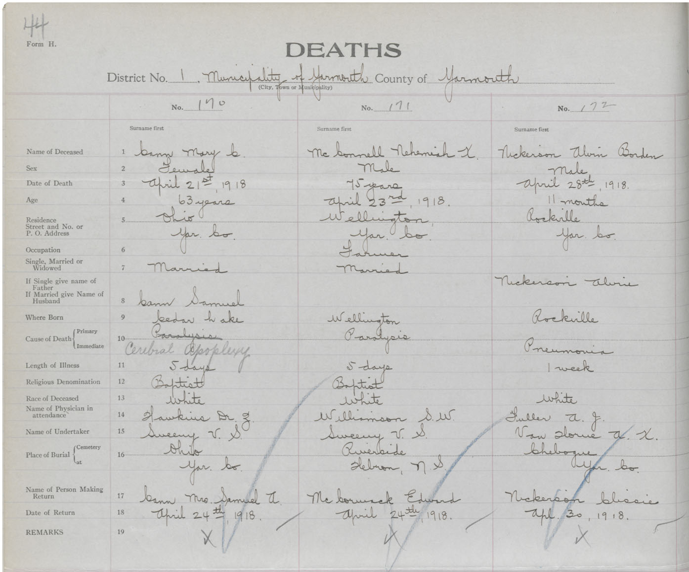 Death Registration: Year: 1918 book: 51 page: 44 number: 170