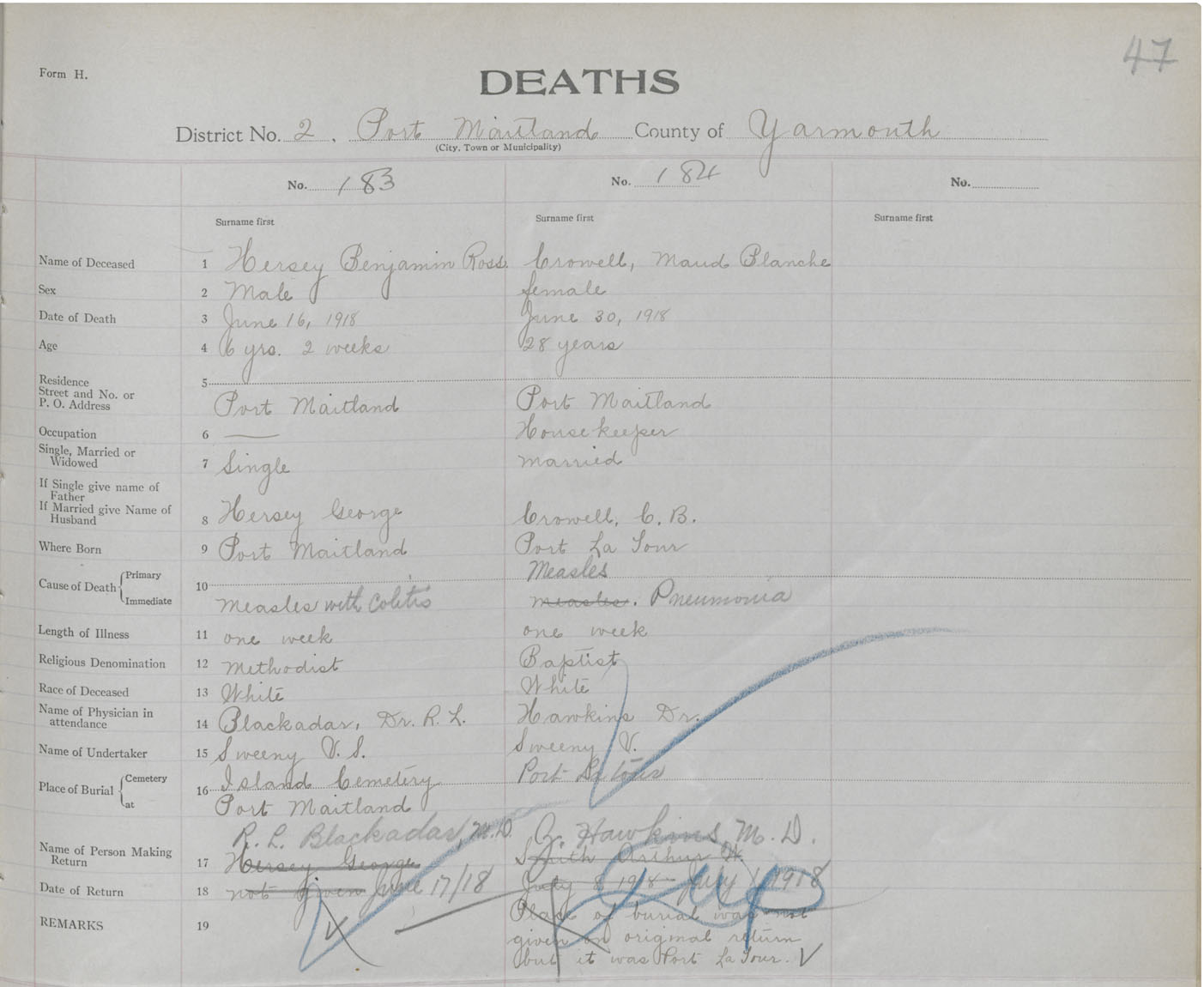 Death Registration: Year: 1918 book: 51 page: 47 number: 183