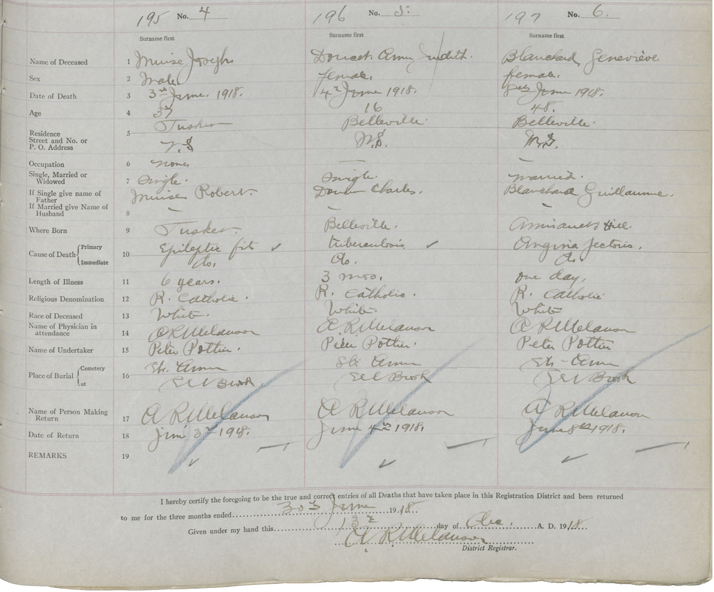 Death Registration: Year: 1918 book: 51 page: 53 number: 195