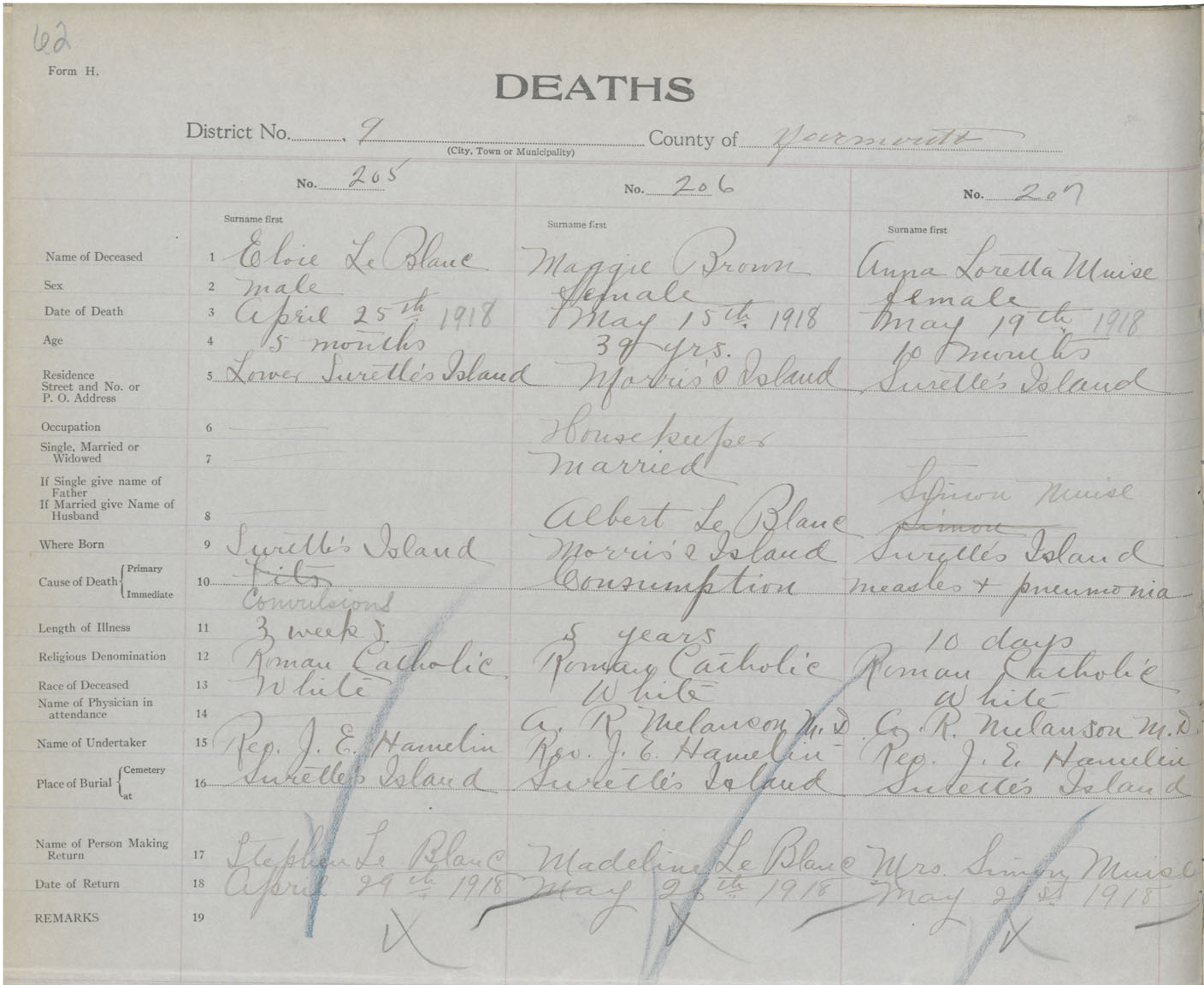 Death Registration: Year: 1918 book: 51 page: 62 number: 205
