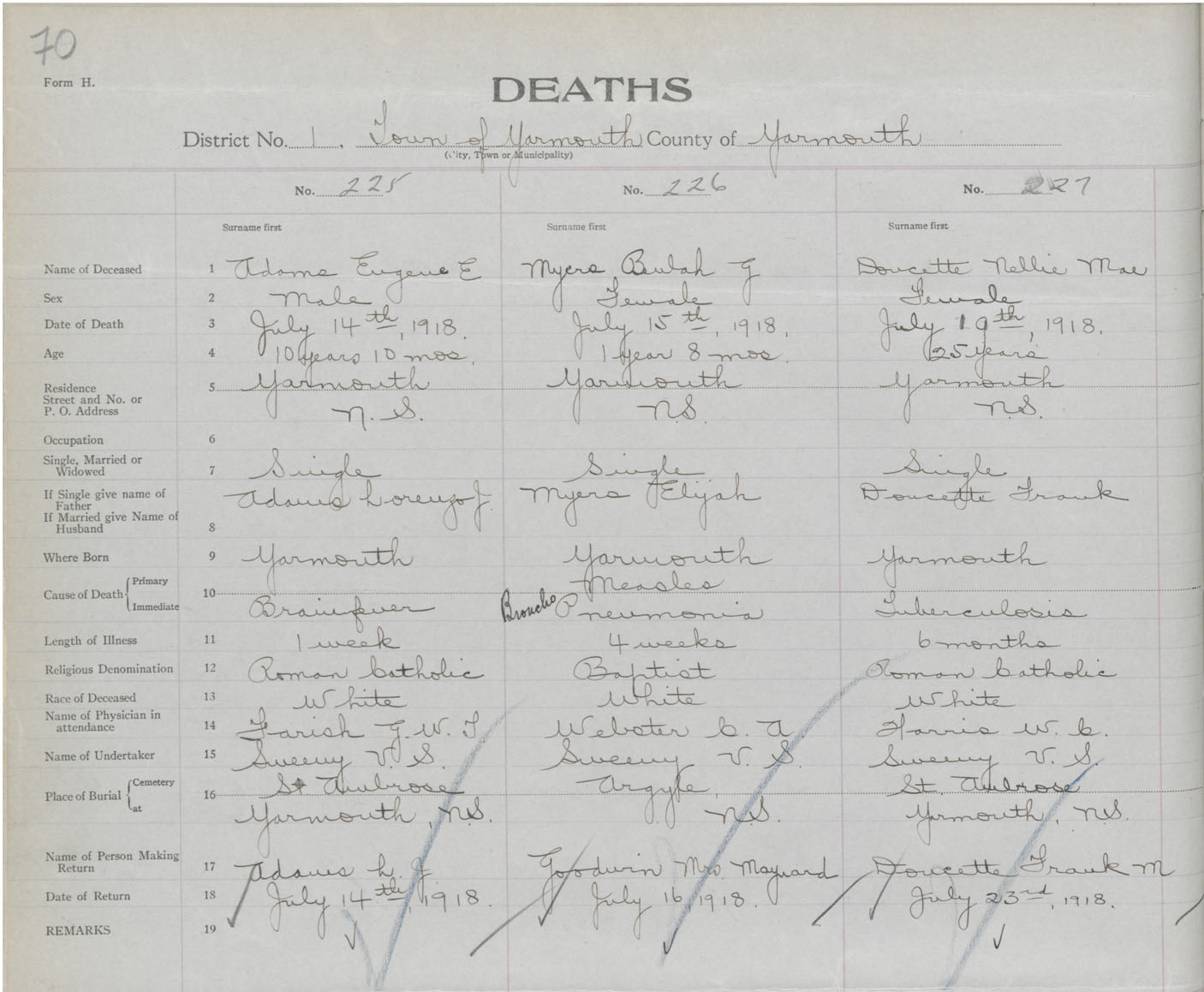Death Registration: Year: 1918 book: 51 page: 70 number: 225
