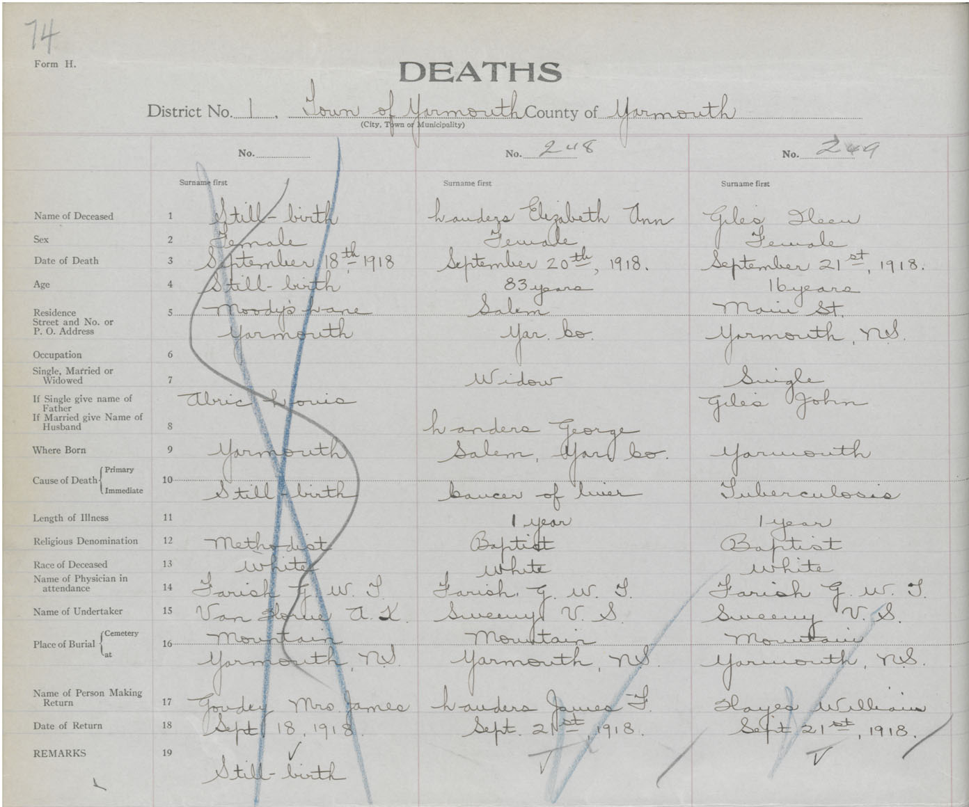 Death Registration: Year: 1918 book: 51 page: 74 number: 249